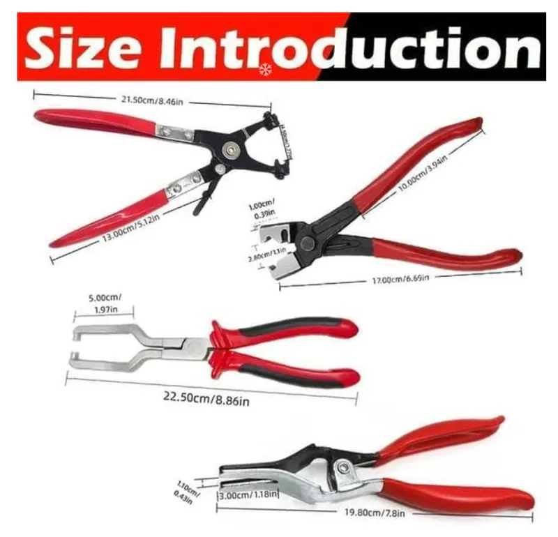 - Complete 4-Piece Kit: Includes hose remover plier, Clic-R collar plier, fuel clip pipe plier, and pro-grade hose clamp plier — everything you need to tackle fuel lines, coolant hoses, and transmission pipes in one convenient set. Perfect for mechanics and DIY enthusiasts alike! 🛠️✨