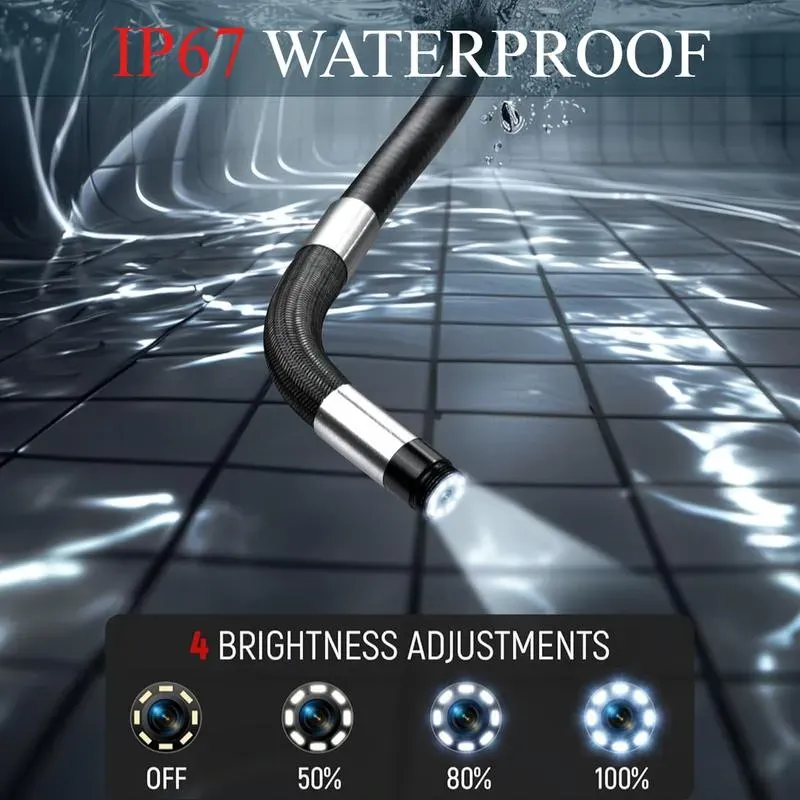 •【IP67 Waterproof】Equipped with a waterproof camera and semi-rigid cable, the camera works in wet or underwater conditions, perfect for sewer or pipe inspections.
